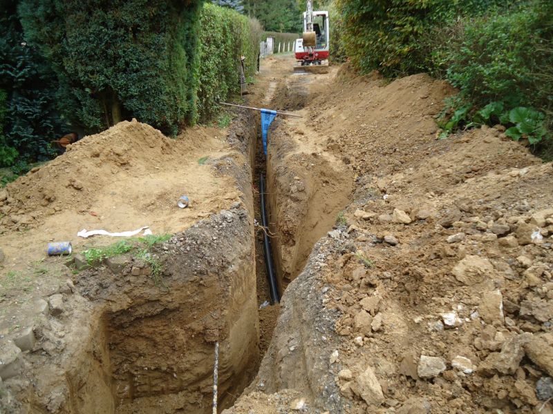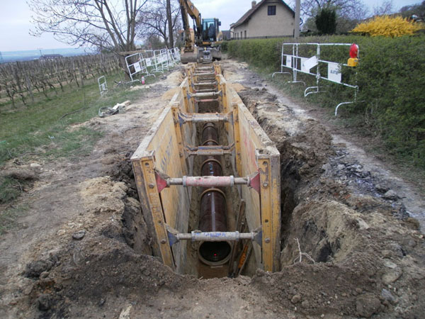 • výstavba gravitační kanalizace, pokládka do otevřeného výkopu