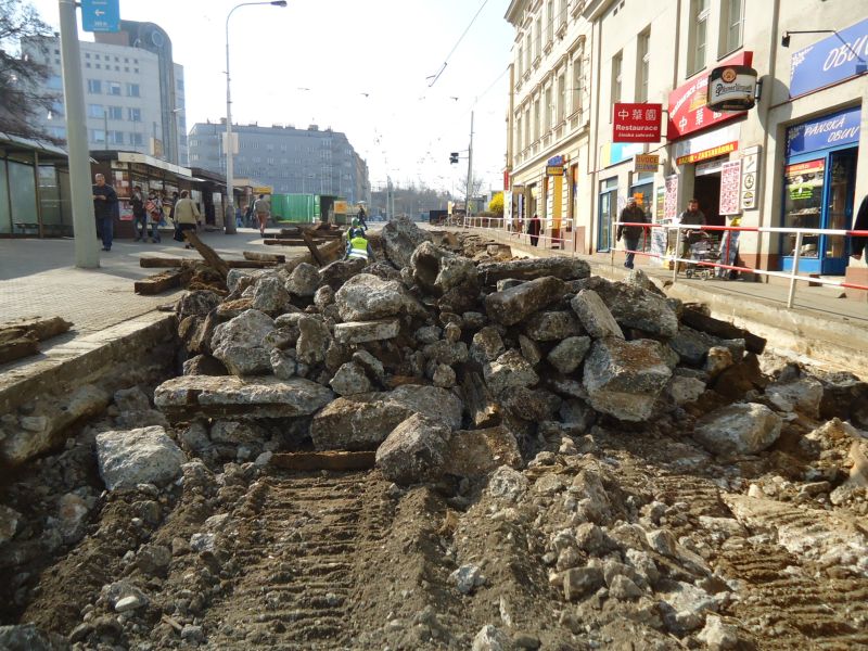 • odstranění podkladních vrstev pod tramvajovou tratí