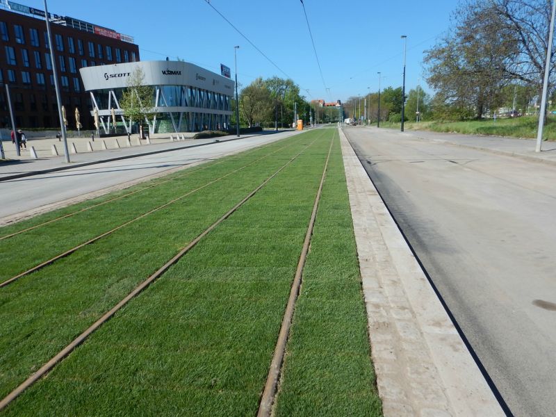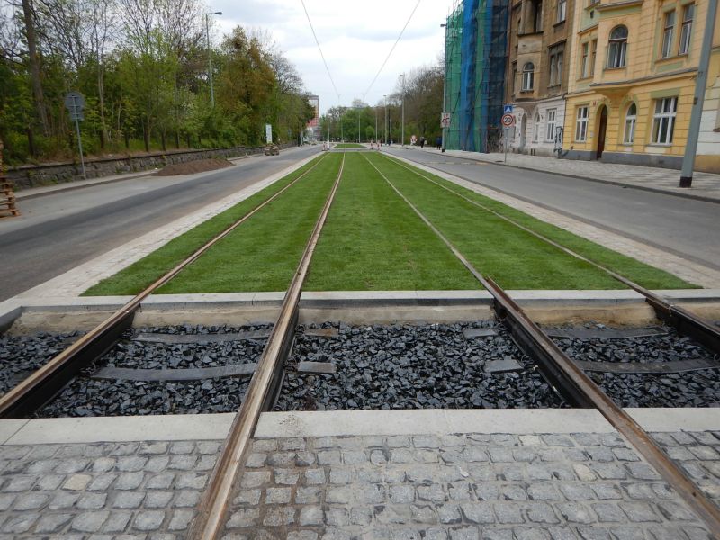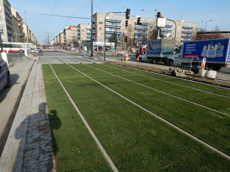 Zatravnění bylo provedeno celkem na 8 637 m2 krytu tramvajové trati s kolejnicí S49 ve složení: