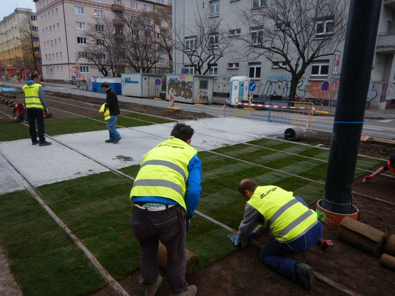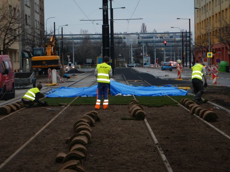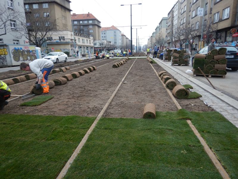 Zatravnění bylo provedeno celkem na 3 691 m2 krytu tramvajové trati s kolejnicí S49 ve složení: