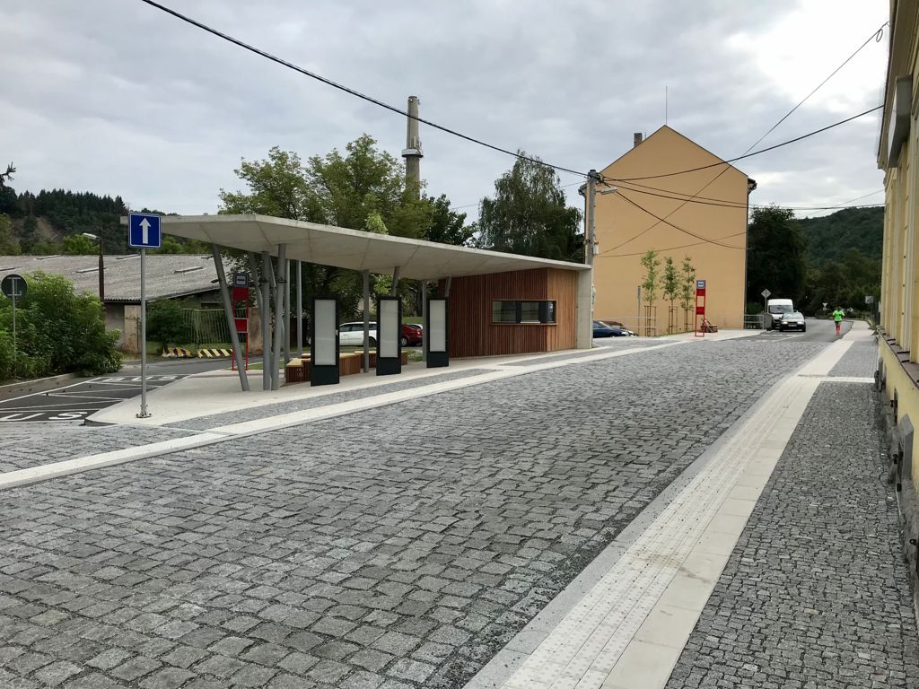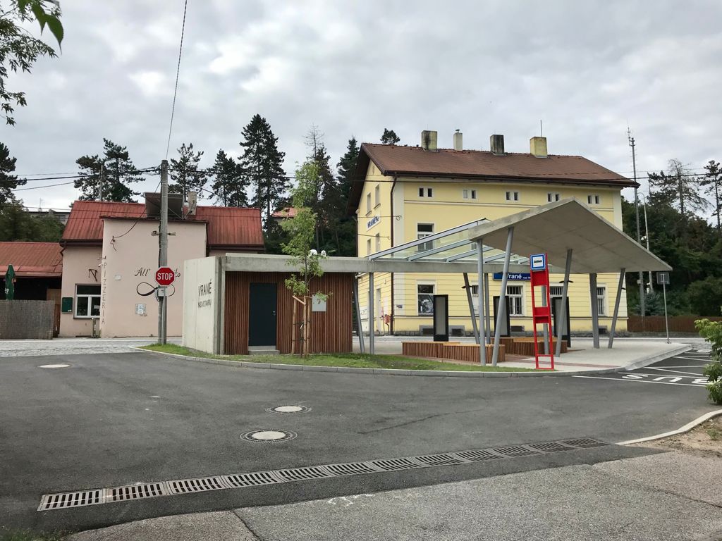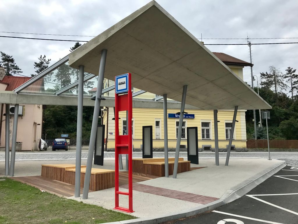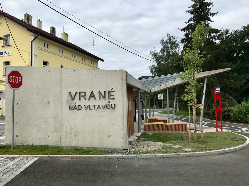 Dokončení částečně rozestavěné stavby přestupního terminálu s kioskem ve Vraném nad Vltavou pro autobusovou dopravu s napojením na železniční stanici. zastřešení terminálu tvoří železobetonové monolitické desky z pohledového betonu podepřené ocelovými sloupy a železobetonovou stěnou. Mezi rameny zastřešujících beteonových desek je rozepřen prosklený světlík nesený ocelovými profily. Kiosek s prodejní částí a zázemím pro řidiče autobusů je řešen jako opticky vsazená vestavba do betonové schránky. Provedeny byly nové vodovodní, kanalizační a elektrické přípojky. Součástí stavby jasou také rekonstrukce zpevněných ploch pěších komunikací, vozovky a výstavba parkovacích ploch.